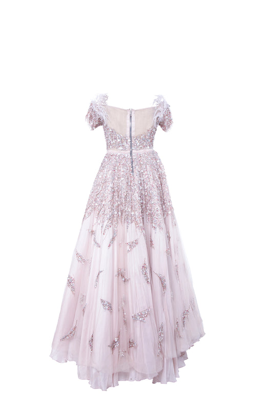 Leya Blush Embellished Tulle Maxi Gown