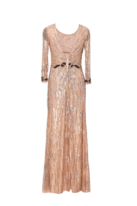 Scarlet Sequined Cutout Long Sleeve Maxi Gown