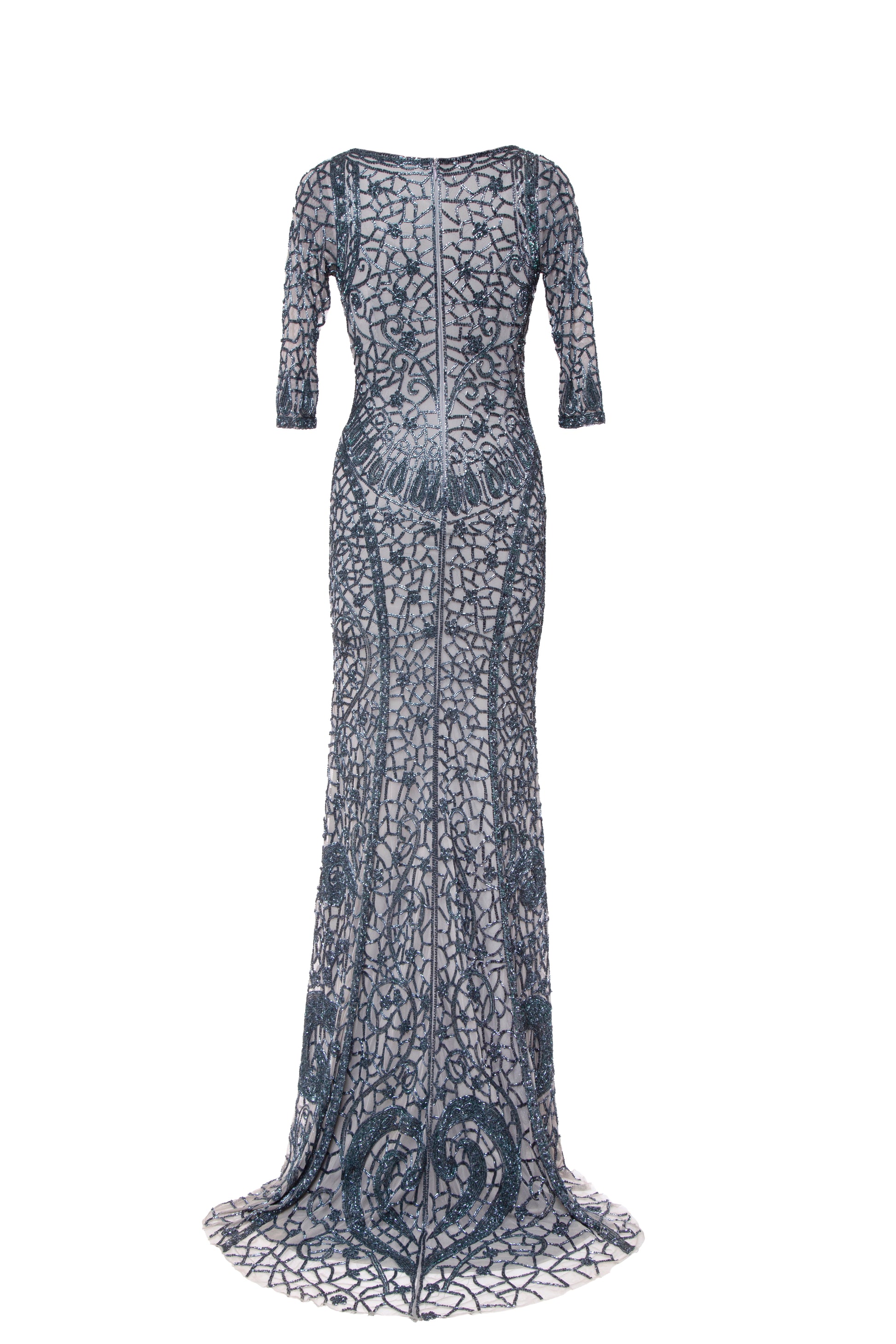 Maude Embelished Empire Bodice Three-Quarter Sleeve Maxi Gown