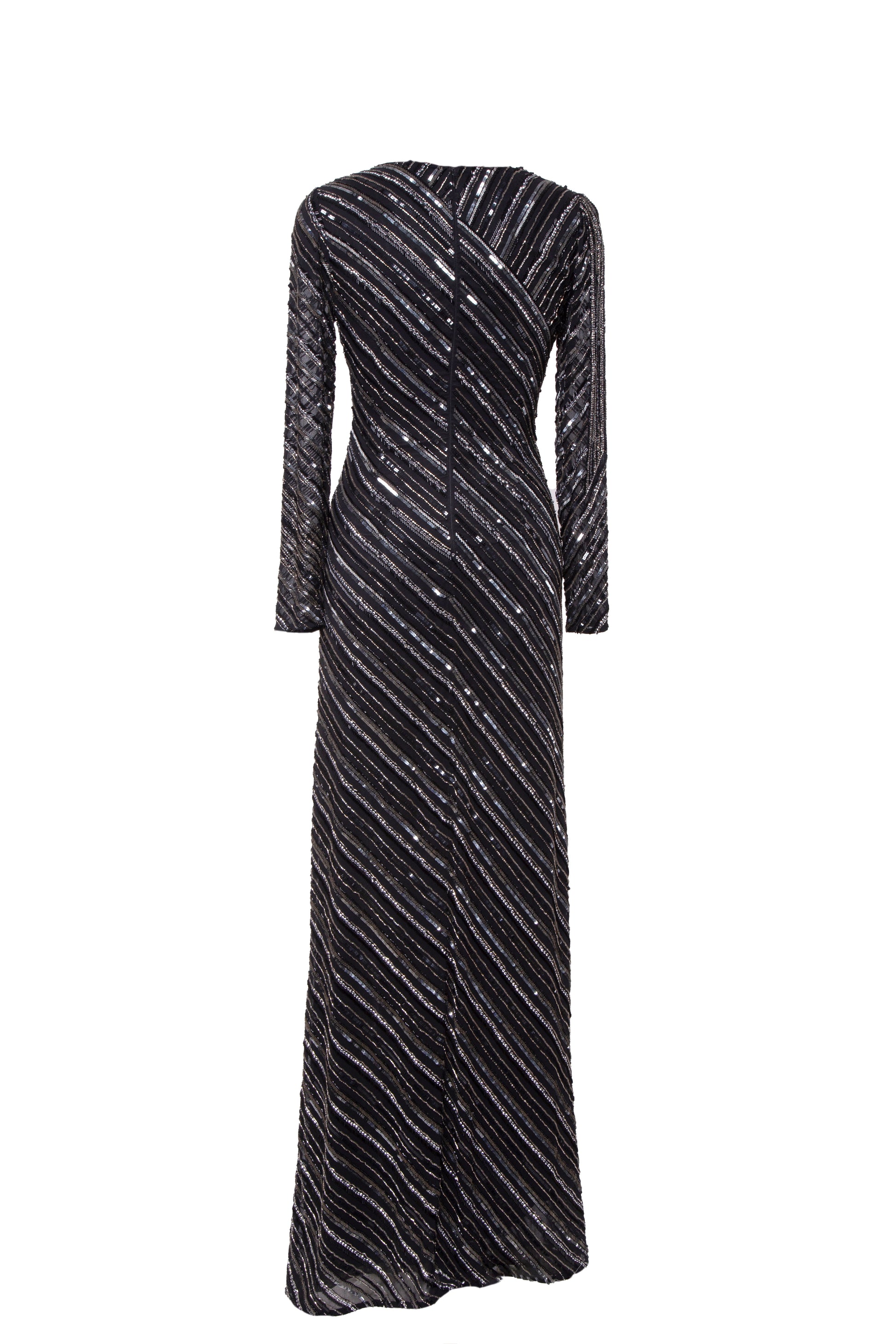 Luna Stripe Embellished V-Neck Long Sleeve Maxi Dress